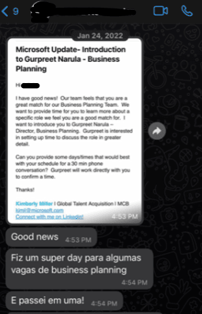 17 anos de Experiência Profissional - 7.5 de Itau, depois 2 de MBA em Dartmouth College e 7.5 Microsoft EUA: "Consegui fazer a tão sonhada transicao de Itau Brasil para Big Tech nos EUA, com offers do Google e da Microsoft"